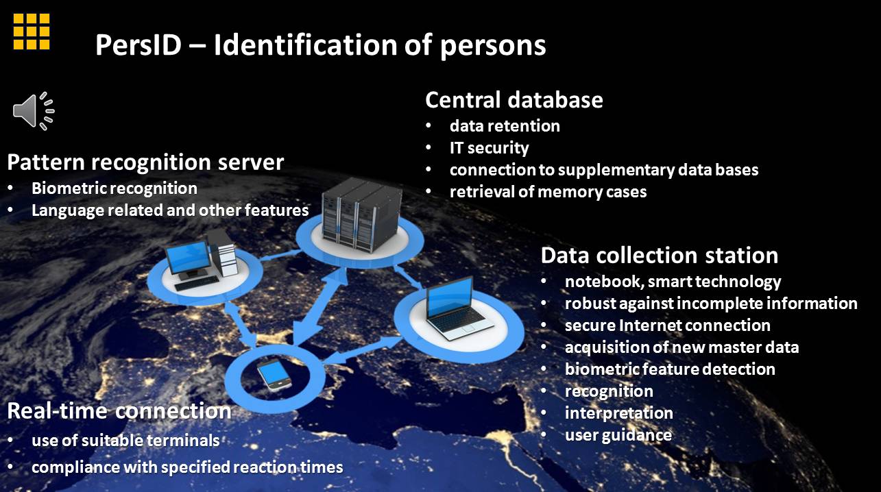 The use of suitable technical procedures can be used to identify characteristics that are useful for the verification of the information of the persons. The following methods and technologies are possible: